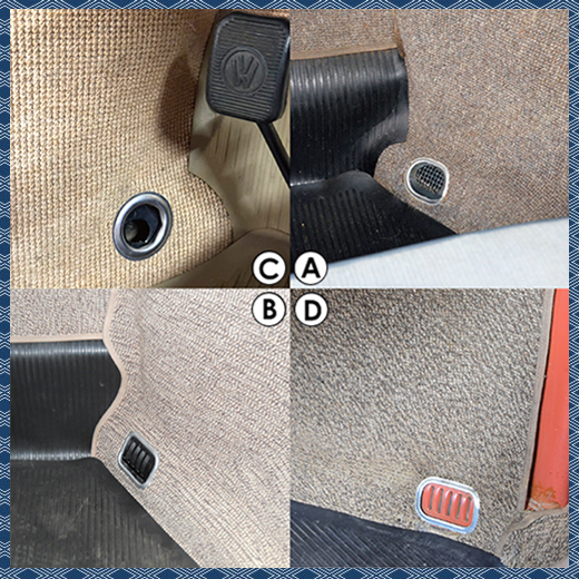 年式毎にラウンドタイプ、オーバルタイプ、スクウェアタイプがございます。GERMANスクウェアウィーブやシンセティックフロアーカーペットをご注文の際にご指定頂ければ、このアルミトリムを取り付けた状態でお届けする事も可能ですので、お気軽にお申し付けください。