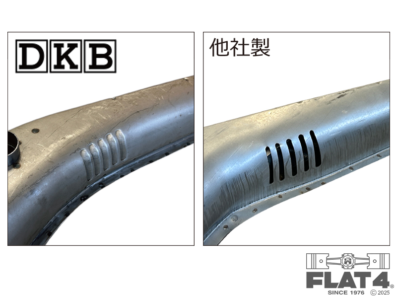 DKB製は、カットされた部分を内側へプレス成形して押し込んだルーバー構造を採用。これは、車両後方から流れてくる暖気を車内へスムーズに導く、極めて理にかなった設計です。VW純正のヒーターアウトレットになぜこの形状が選ばれたのかがよく理解できます。