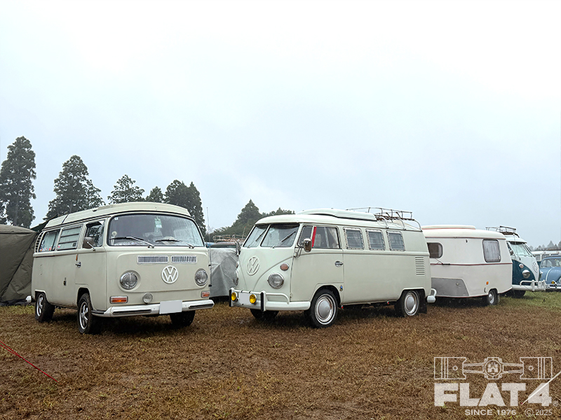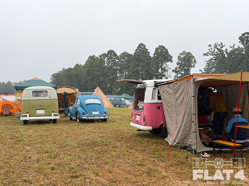 キャンパーをはじめ、VINTAGE VW、CAL-LOOK VW等様々なスタイルのVWsが並び、見応えたっぷりの光景が広がりました。雨のフィールドになってしまったのが残念です。