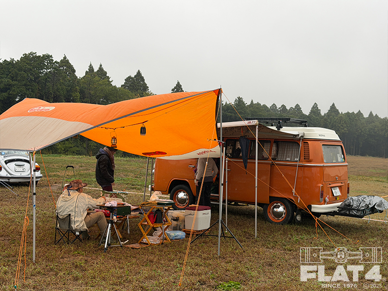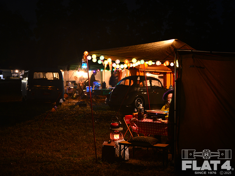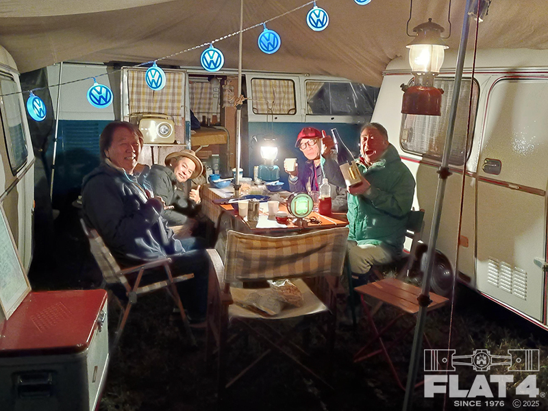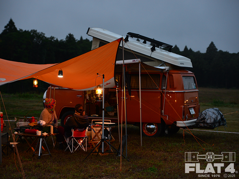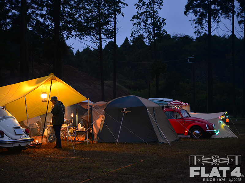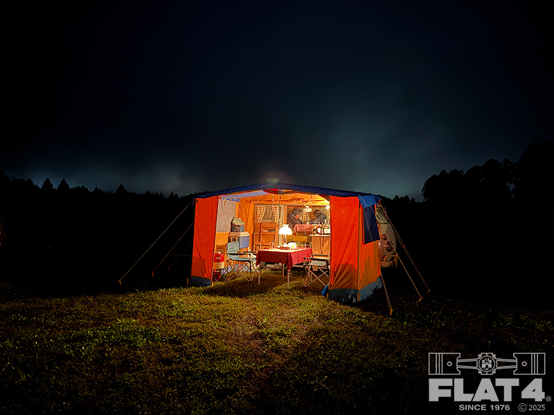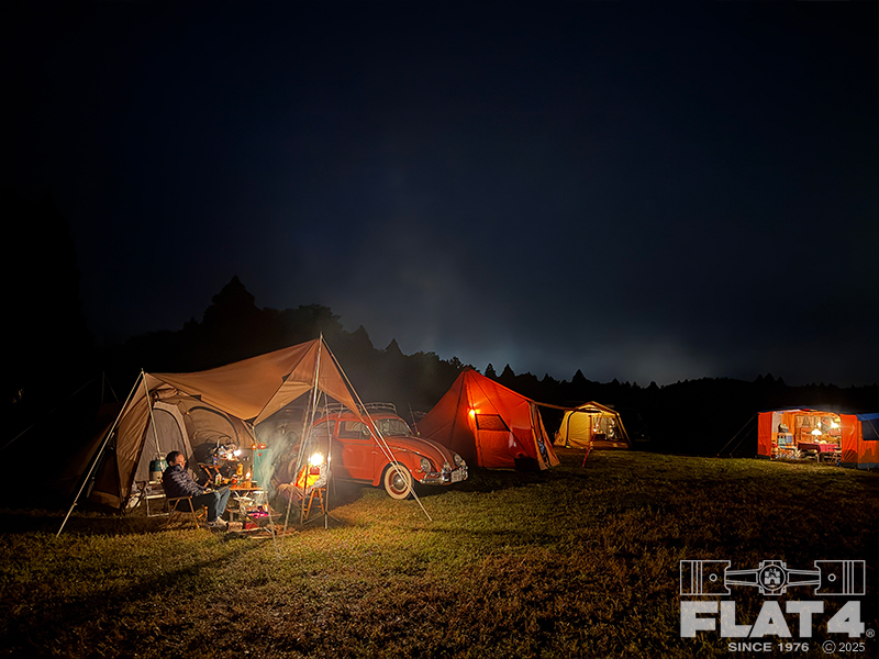 仲間と語らいながら食事やお酒を楽しむ時間は格別です。それぞれのテントから笑い声がこぼれ、「VINTAGE VW FIELD 2025」初日の夜が更けていきました。