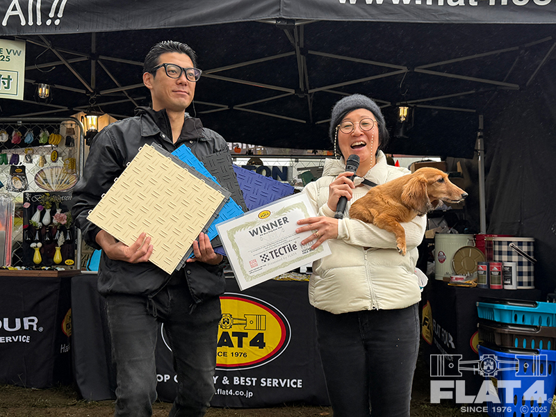 そしてもうひとつの目玉企画である「スロードラッグ」も路面状況を考慮し中止となりました。優勝商品であったTECTile(https://tec-tile.jp)様の樹脂製ガレージタイルをかけて、「スロードラッグ」にエントリーされていた方々とじゃんけん大会を行いました。