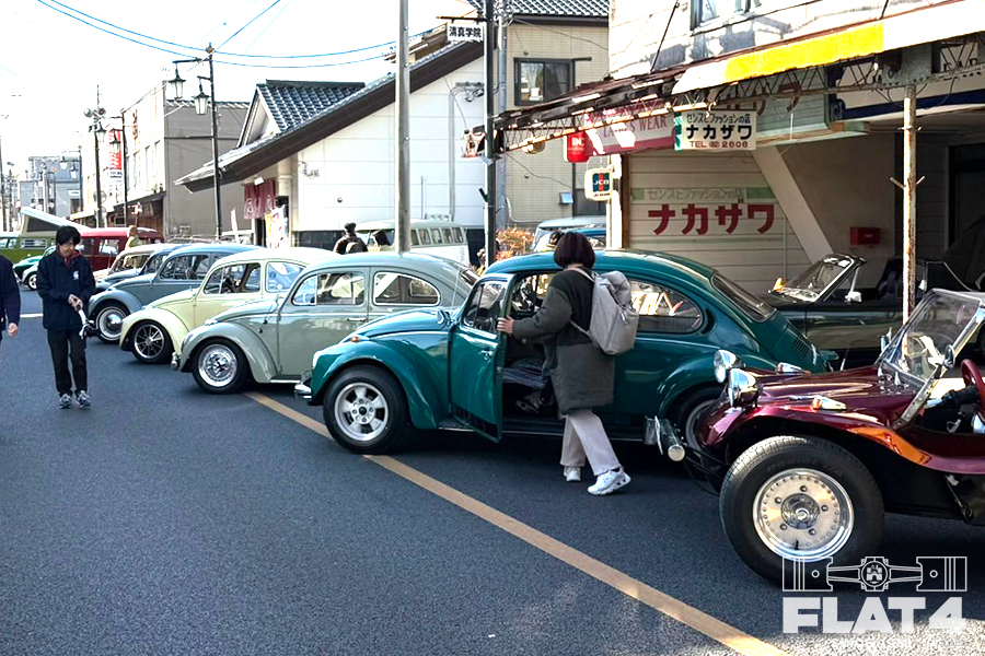 当日は江戸崎商店街の目抜き通りを通行止めにしてエントリーVWが並べられ、ゆっくりと車両を見て回る事が可能。昭和の雰囲気が残る商店街x空冷VWという組み合わせは「SHOW YOUR VWs Meet」ならではの雰囲気です。