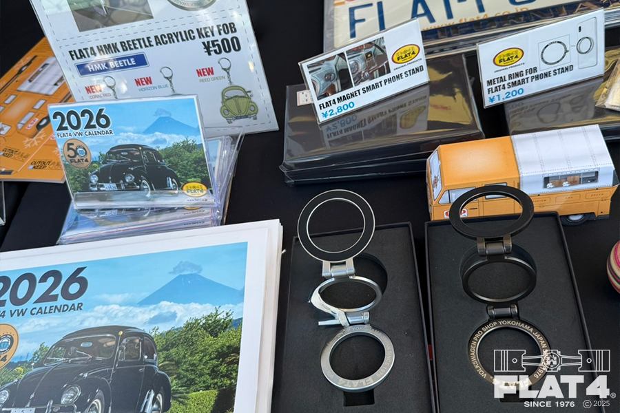 会場の中央に出店させていただいたFLAT4ブースでは、最新の”HMK BEETLE”グッズや”シルバーバージョン”マグネットスマートフォンスタンド、2026 VWカレンダーなどを中心に販売。「Tea BREAK 24th.」限定キャンペーンや先行販売の商品等はSNSで事前に告知を公開していたこともあり、「Instagramを見て来ました!」という方も多数いらっしゃいました。FLAT4ブースにてお買い上げいただいた皆様、ありがとうございました!