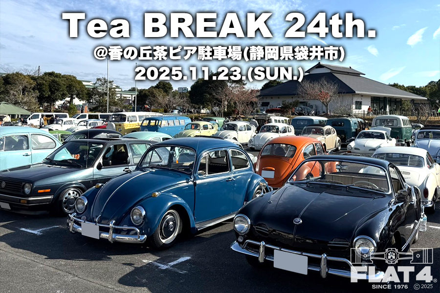 今年で24回目を迎えた「Tea BREAK」は毎年11月に開催されるVWイベントで、関東や関西からアクセスし易い静岡県という場所柄各地から様々な車両が集います。今回は一般駐車場のVWも含めると350台以上にも登り、当イベントの人気の高さが伺えました。