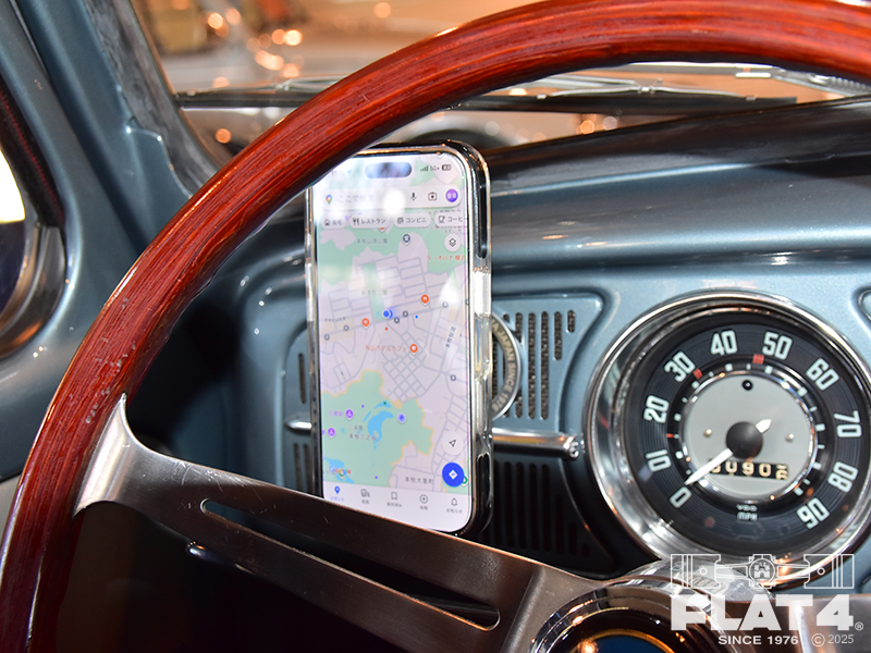 ※MagSafeの磁力には方向性があり強力ではないため、iPhoneを空冷VWのスティールダッシュパネルに直接吸着させることはできません。