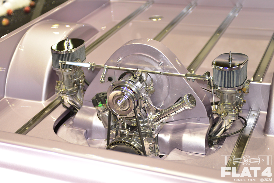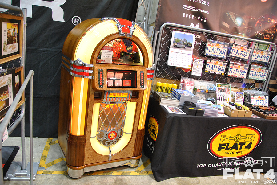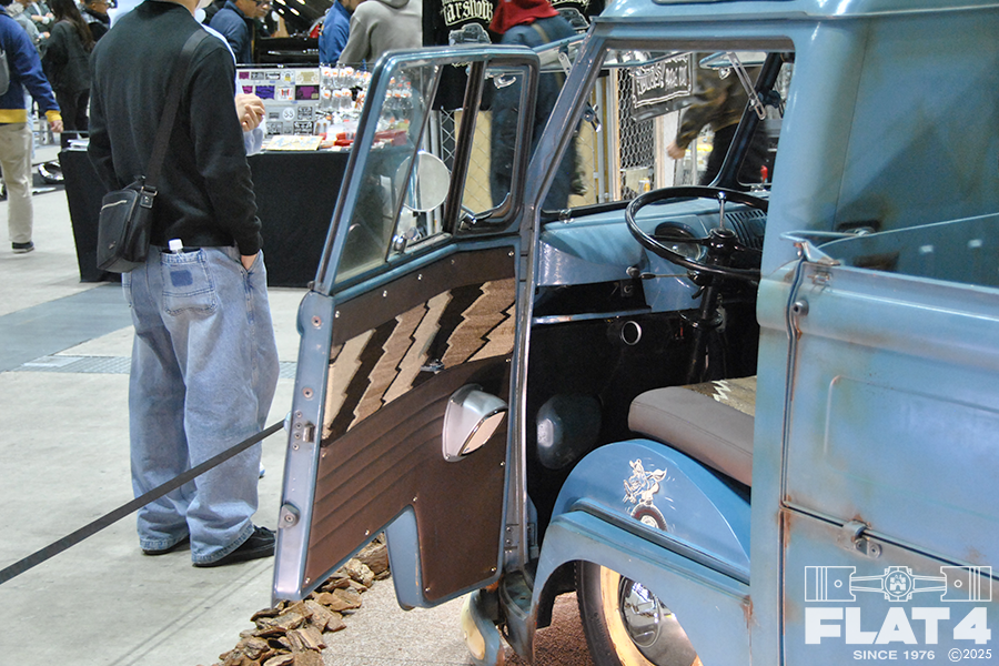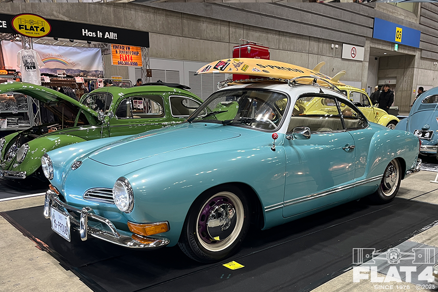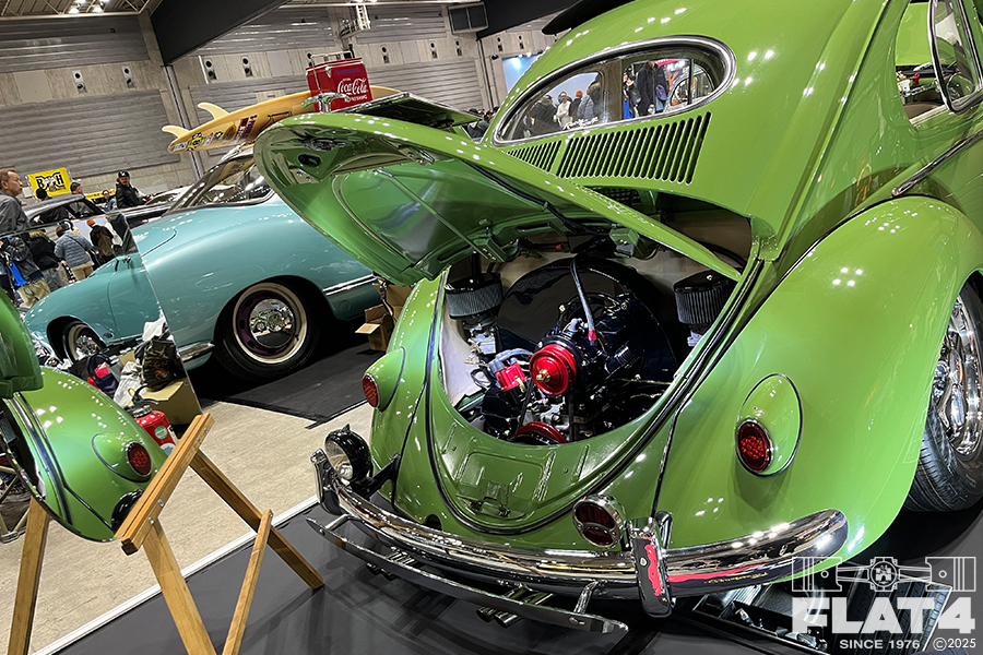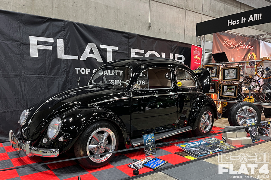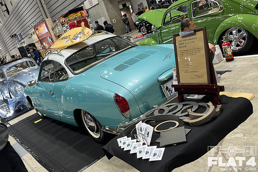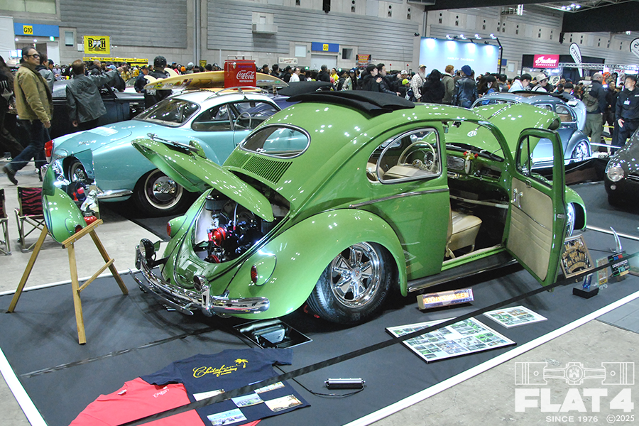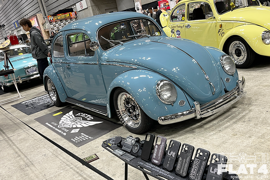 一方、ブース脇のカーショースペースでは、今回は当社にてFOR SALE予定の1957 TYPE-1 OVALモデルをCalifornia Lookへとカスタムして展示致しました!