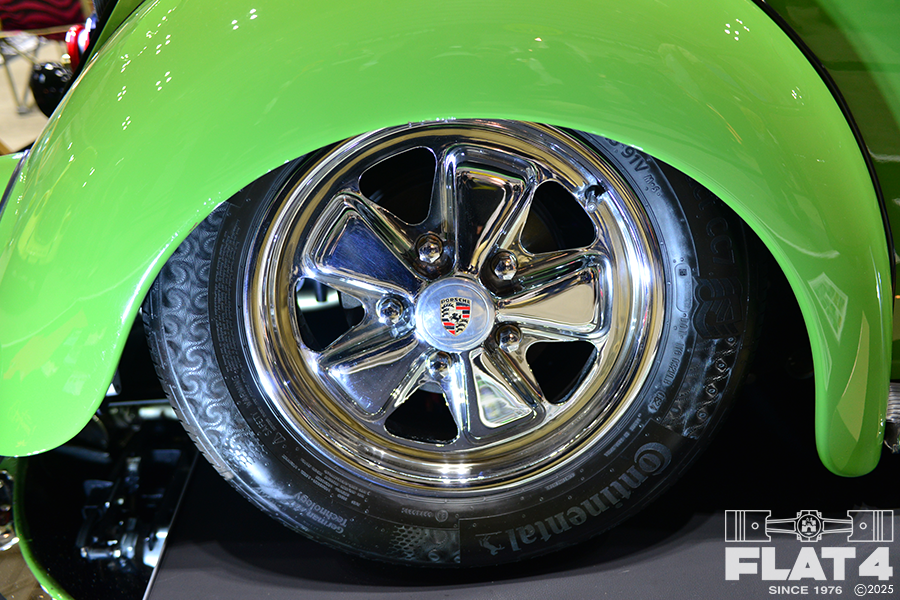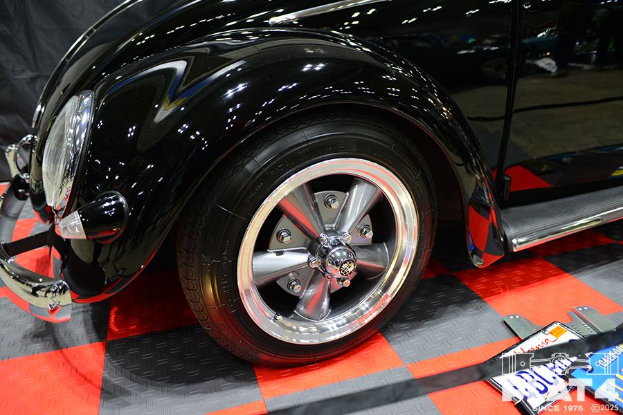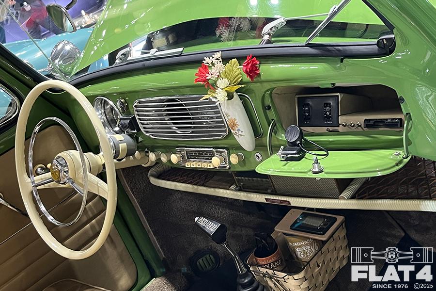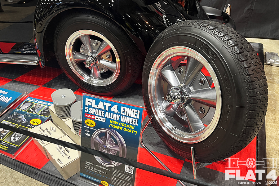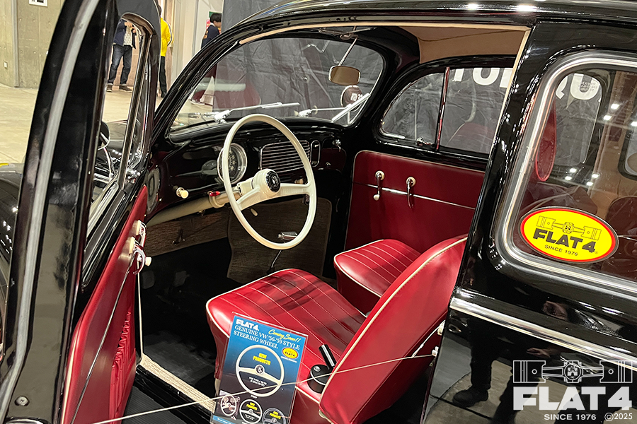 足元には、先日リニューアルしたNew ColorのFLAT4 ENKEI 5スポークホイール(DR-735)にMICHELIN ZX (F)135SR15/(R)165SR15タイヤをチョイスし、ステアリングは、当社オリジナルプロダクトとして現在開発中の通称”オーバルステアリング”と呼ばれる1956-59年モデル用VW純正スタイルステアリングホイールを装着!