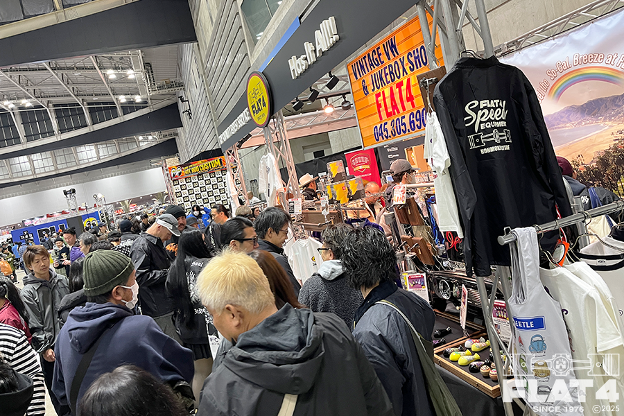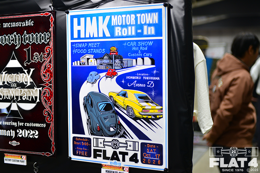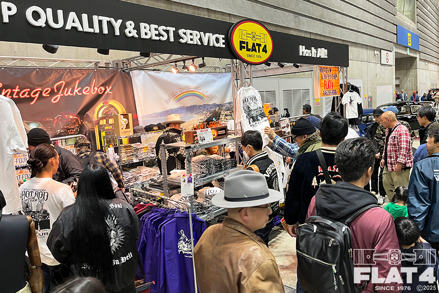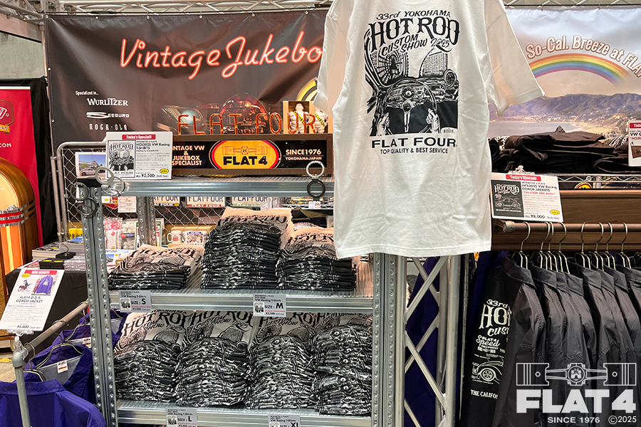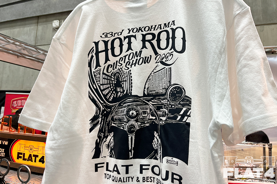 恒例となったHCSとのスペシャルコラボ「FLAT4 Racing VW Tシャツ」は、今年もFLAT4ペインター”KNOCK”がイラストをデザイン。今年は、VW車窓からのYOKOHAMAをイメージしたデザインで仕上げ、午前中のうちにほぼ完売となりました!