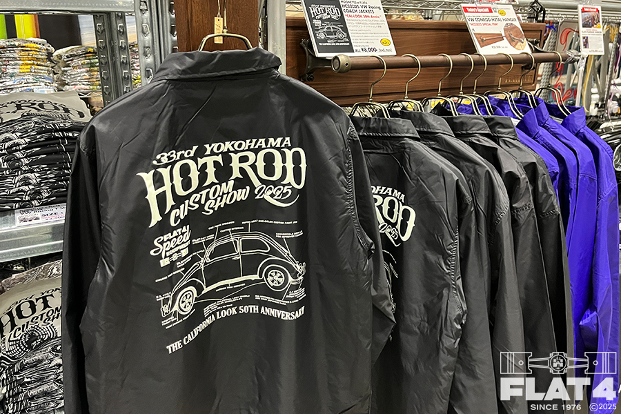 こちらは、”CAL-LOOK”誕生50周年を記念したVWイラストをあしらったデザインに仕上げ、何とこちらも午前中に全サイズ完売となりました!お買い上げ誠にありがとうございます!