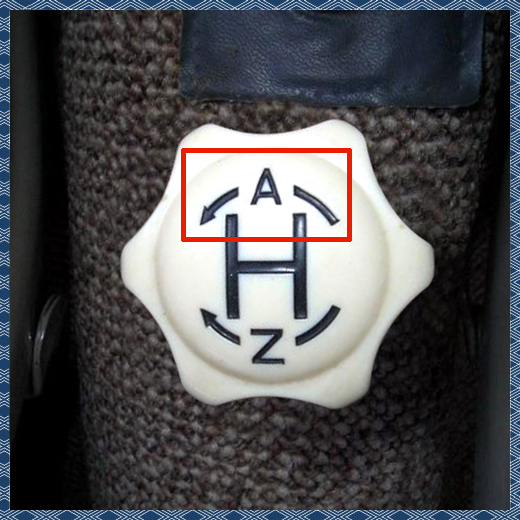 ヒーターコントロールノブの文字はドイツ語で記されているというのがポイントで、”A”=Auf(開)、”Z”=Zu(閉)、つまりヒーターをONにするには時計と反対回りに回すのが正解となります。