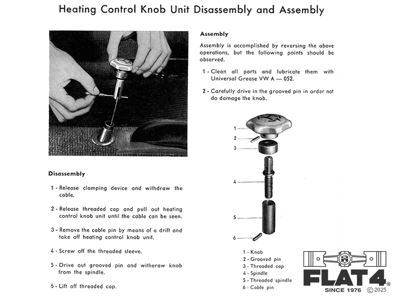 ちなみにこのヒーターコントロールノブ(IN-261)は”Zwitter”スタイルと呼ばれるタイプで、’52年10月のU.S.モデルから採用されました。実際には”Zwitter”の後も採用され、’53年式の初期OVALウインドーモデルにも備わっていました。
