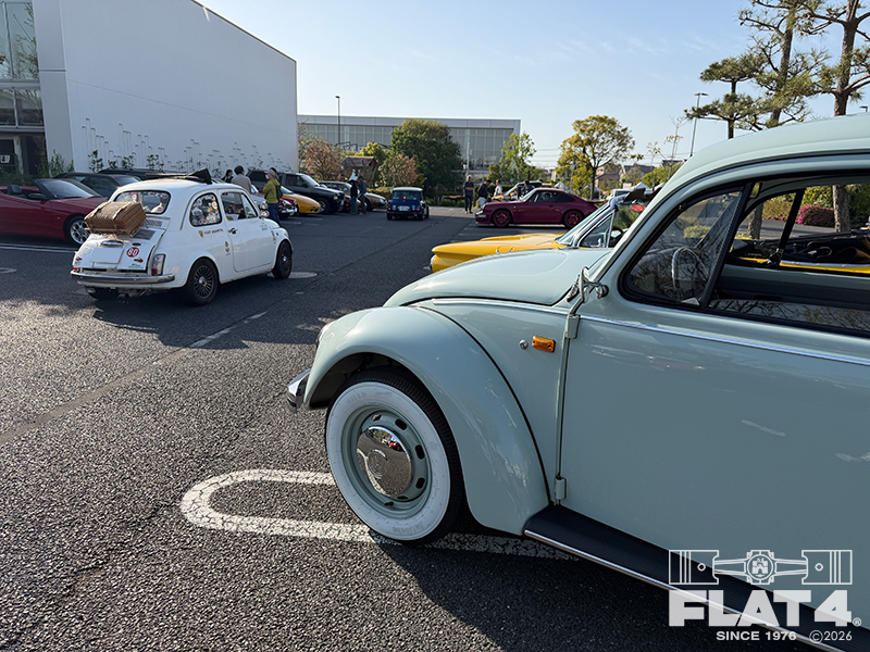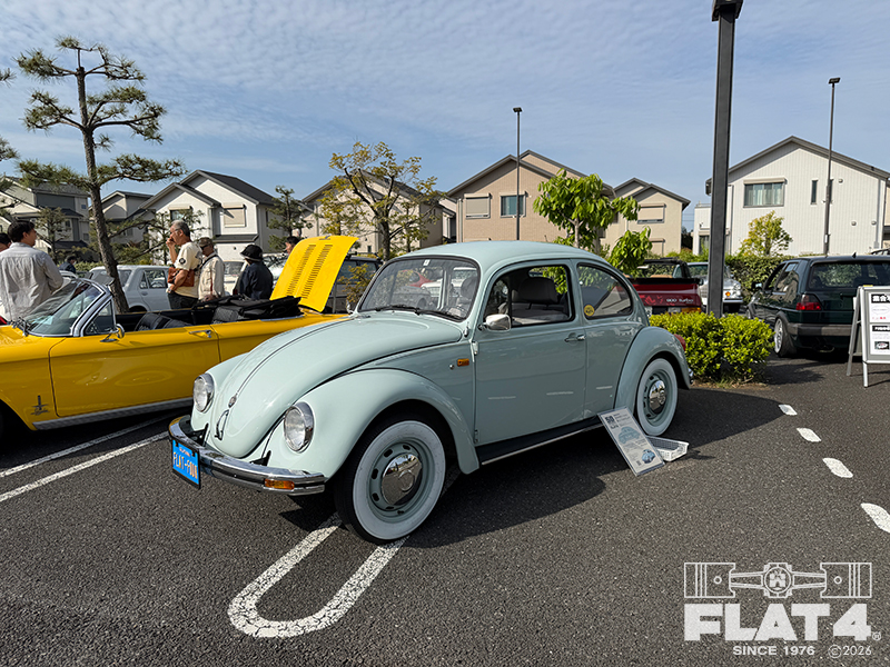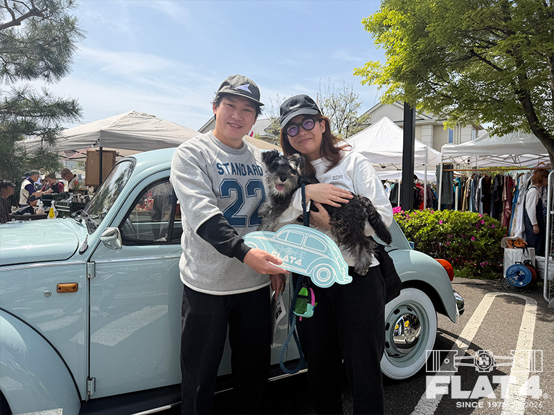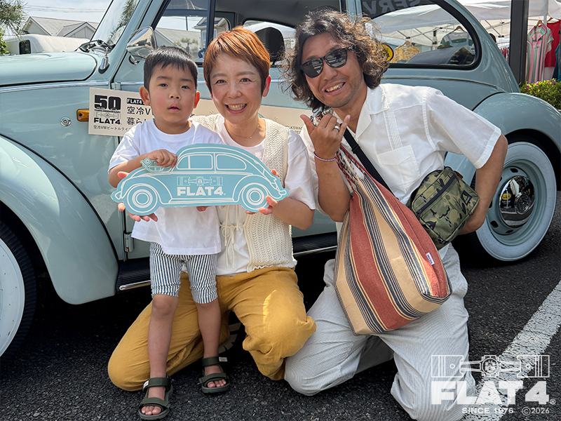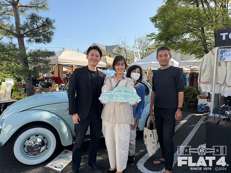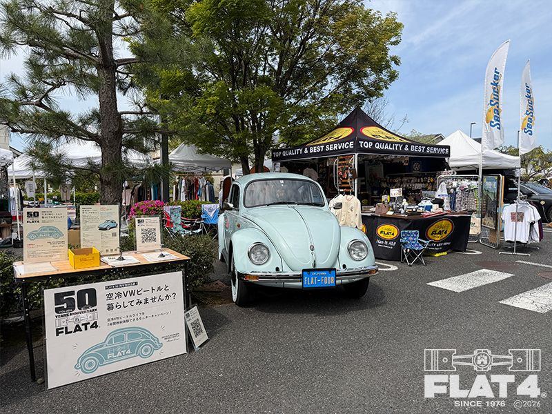 今回初出店となるFLAT4は、50周年を記念した特別企画「空冷VWビートルライフを2年間無料体験できるモニターキャンペーン」のモニター車両「フォルクスワーゲン ビートル 2003年式メキシコ生産最終モデル”アルティマエディション”」を展示。キャンペーンの告知以来初めての実車公開ということで、たくさんの方々にご覧いただくことができました。