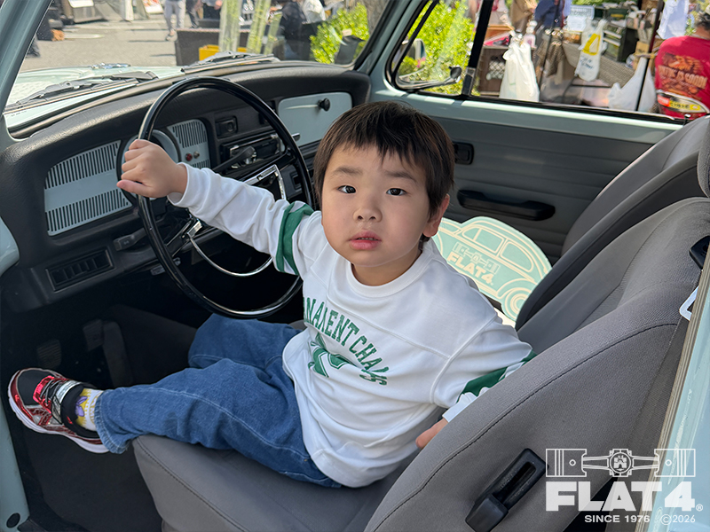 ビートルはお子様にも大人気で、実際に乗り込んでステアリングを握り、ドライブ気分を楽しむ姿も見られ、会場の中でもひときわ印象的な存在となっていました。今回のモニターキャンペーンは18〜39歳の方限定のため応募対象外とはなりますが、将来の空冷VWオーナー候補として、こうした体験が心に残ってくれれば嬉しい限りです。