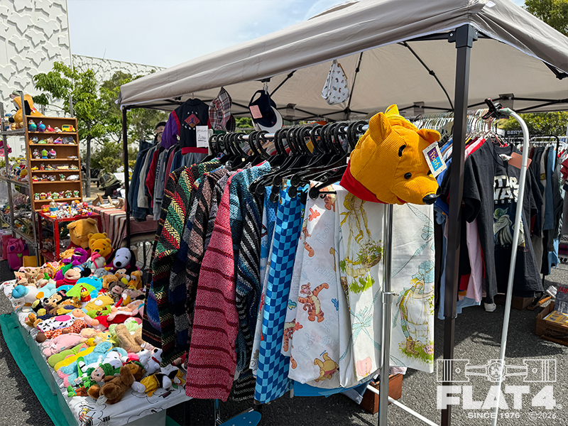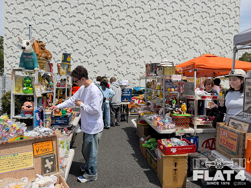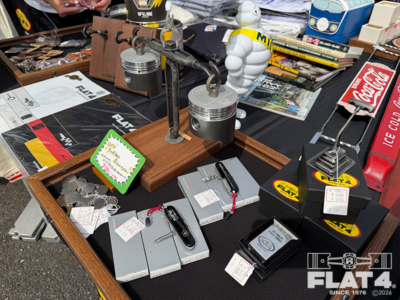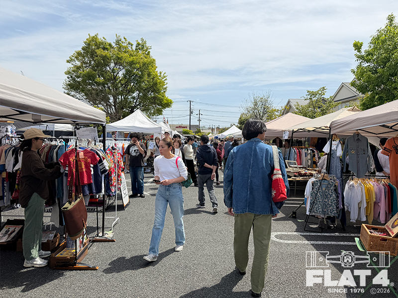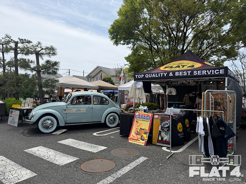 FLAT4ブースでは、一点物のアメリカンヴィンテージ雑貨をはじめ、オリジナルアイテムやアパレルを多数販売。これまでFLAT4をご存知なかったお客様にも、HMKビートルグッズや空冷VWアイテムの世界観に共感いただき、多くの商品をお手に取っていただきました。