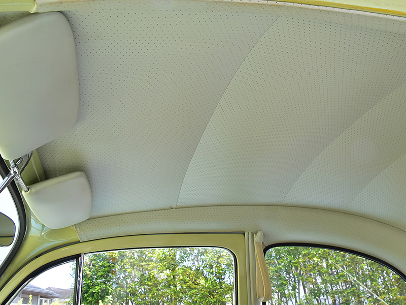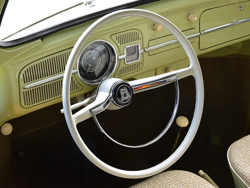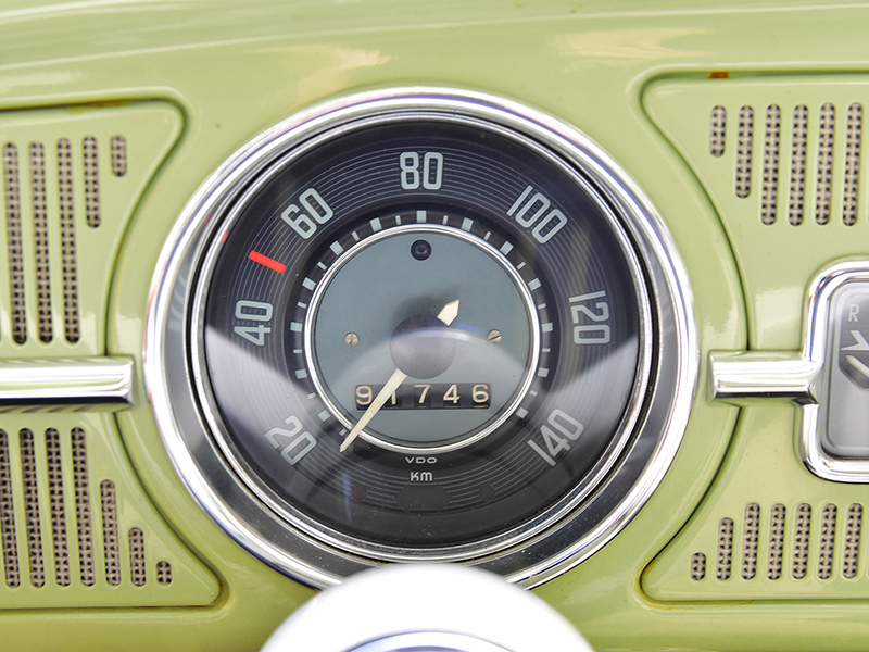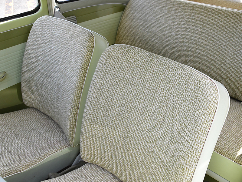 ベイルグリーン(L-478)のボディカラーは1961-63年式のみに採用されたVW純正色で、過去にヨーロッパにてリペイントされています。インテリアにおいては、ダービーオリーブのクロスマテリアルシートやネパールグリーン/ライトベージュのドアパネル、オリーブのカーペットなど、素晴らしいコンディションのオリジナルをキープ。