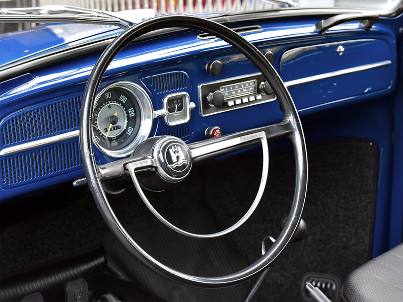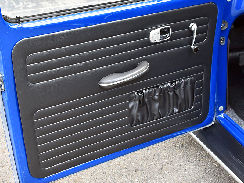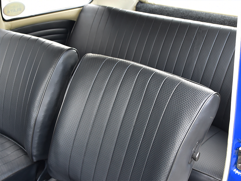 ボディはVW純正色のVWブルー(L-633)にて外装ニューペイントを行い、インテリアはシートカバー/ドアパネル/フロアーカーペット/ヘッドライナーをVWスタイルのニューマテリアルにてリフレッシュ。